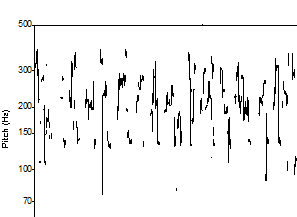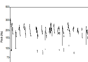 Die Pitch-range gibt mit diesen Merkmalen Aufschluss über Tonhöhenunterschiede (Intonation) im Sprechsignal, d.h. wie „melodiös“ die Stimme ist.